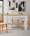 The rattan elements infuse a touch of natural texture, creating a warm and inviting ambiance in your dining space. The design seamlessly combines classic aesthetics with a modern twist, making these chairs versatile enough to complement various interior styles.