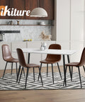 Crafted with high-quality polyurethane (PU) leather, these dining chairs exude an air of elegance and luxury. The smooth, easy-to-clean surface not only looks and feels like genuine leather but also makes maintenance a breeze. Sink into the generously padded seat and backrest and enjoy a comfortable dining experience.
