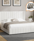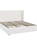 Bed Frame King Size Gas Lift Base Boucle Fabric White