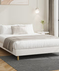 Bed Frame Queen Size Bed Base White Boucle