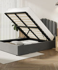 Bed Frame Queen Size Gas Lift Velvet Grey