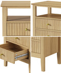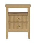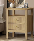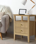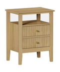 Bedside Table 2 Drawers Open Shelf Nightstand Natural