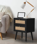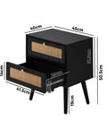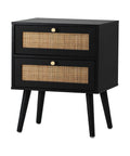Bedside Table 2 Drawers Storage Cabinet Rattan