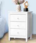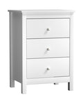 Introducing our newly launched bedside table by - a chic and functional addition to enhance your bedroom decor. This stylish bedside companion features a pristine white finish that effortlessly complements any interior aesthetic. With three drawers adorned with elegant white knobs, this bedside table not only provides convenient storage but also adds a touch of sophistication to your bedside essentials.