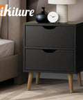 Bedside Tables 2 Drawers Air Gap Handle Black