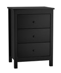 Introducing our newly launched bedside table by - a chic and functional addition to enhance your bedroom decor. This stylish bedside companion features a pristine black finish that effortlessly complements any interior aesthetic. With three drawers adorned with elegant black knobs, this bedside table not only provides convenient storage but also adds a touch of sophistication to your bedside essentials.