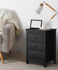 Whether you're looking to complete a cohesive bedroom ensemble or simply seeking a versatile and stylish storage solution, our black bedside table with three drawers is the perfect choice. Elevate your bedroom with a piece that seamlessly combines practicality with enduring elegance, making every bedtime routine a delightful experience.