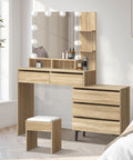 What’s more, store all your beauty essentials or more with the two open shelves, two deep-set drawers and a three-drawer cabinet that are always within your easy reach from top to bottom. Never complain about insufficient space again. Not least, a comfortable and luxurious PU leather-upholstered completes the set for a tribute to stardom with your well-storied lifestyle. Order your Dressing Set today and mirror the famous with a brilliant countenance.