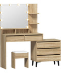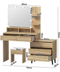 Dressing Table Stool Set 10 LED Bulbs Natural