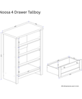 The Noosa Tallboy combines coastal style with practical storage. Its clean white finish and warm oak top create a fresh, inviting look, while built-in shelves keep your essentials organised and accessible. Silver hardware adds a contemporary finish that complements any bedroom décor.