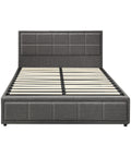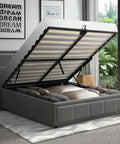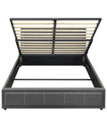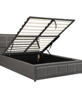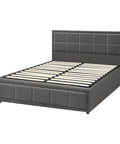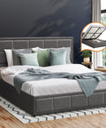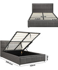 Queen Bed Frame Gas Lift Storage Base Fabric Grey