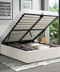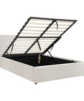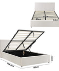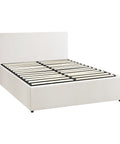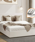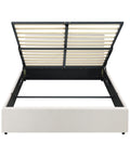 Queen Bed Frame Gas Lift Storage Base White Boucle