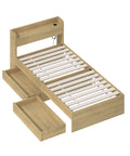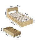 Single Size Bed Frame with Charging Ports & 2 Drawers