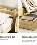 Time to liven things up in bed. And the Trundle Bed Frame is just the perfect choice to spice up your sleepcapades. Its contemporary styling will certainly give your bed a good makeover to bring it in line with current trends. But what’s really unique about this bed frame is the bed head shelf that makes it convenient for you to store personal items up close. And with the dual USB charging ports, you’ll never have to leave your bed to charge up your favourite media devices with extended use. Plus, with two large trundle drawers fitted with castor wheels, the bed frame enables generous storage space for all your bedroom and other household essentials. A major plus especially where bedroom real estate is at a premium and any added functionality to the bed is always welcomed.