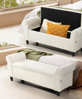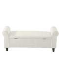 This large white Storage Ottoman with faux Sherpa fabric offers extra seating and hidden storage. Its cushioned top provides comfort, while the spacious interior keeps your home tidy by storing linens, cushions, or other items. Featuring durable metal hinges and easy-to-assemble legs, it adds stylish practicality to any living space.