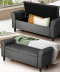 Storage Ottoman Linen Fabric Large Grey