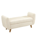 Storage Ottoman Sherpa Fabric White with Armrests