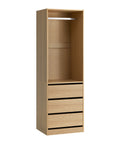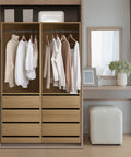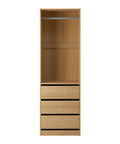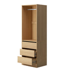 This built-in wardrobe unit offers smart storage with three drawers and a hanging rail, perfect for organizing clothes, accessories, and linens. Its space-saving design fits seamlessly into your home, combining style and functionality. Upgrade your storage effortlessly with this durable and practical wardrobe solution.