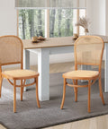 The rattan elements infuse a touch of natural texture, creating a warm and inviting ambiance in your dining space. The design seamlessly combines classic aesthetics with a modern twist, making these chairs versatile enough to complement various interior styles.