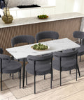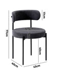 With its luxurious Boucle upholstery generously padded with high-density foam for the seat and backrest and, you're sitting on prime comfort. The contoured backrest also provides ample support for you to sit back and enjoy the seat. Soft and satisfying, the feeling is as good as savouring that delicious meal served to you. Aesthetically, the dining chair is simply captivating with its sleek powder-coated metal legs in chic black to accentuate the richness of the seat and curved backrest. A minimalist styling that renders maximum presence.