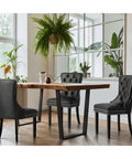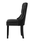 The contoured high back backrest is designed to offer greater support that wraps around your upper body while the well-padded high-density foam seat is as comfortable as ever with every sitting. Better still, the interior side of the seat are fitted with silver stud trim and button tufted backrest oozes class and sophistication all round. With its sturdy wooden legs, the dining chair is also extremely stable and handle up to 150kg in weight capacity.