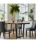 The contoured high back backrest is designed to offer greater support that wraps around your upper body while the well-padded high-density foam seat is as comfortable as ever with every sitting. Better still, the interior side of the seat are fitted with silver stud trim and button tufted backrest oozes class and sophistication all round. With its sturdy wooden legs, the dining chair is also extremely stable and handle up to 150kg in weight capacity.
