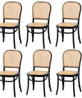 6PCS Dining Chairs Wooden Chairs Rattan Black