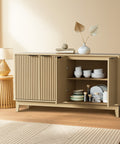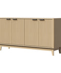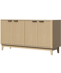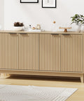 This natural buffet sideboard features four doors and ample storage space, perfect for organizing your household essentials. Its sleek design with vertical grooved panels adds a stylish touch to any room. Adjustable shelving lets you customize storage to fit your needs, while sturdy construction ensures lasting durability. The flat top is ideal for displaying your favorite decor or photos. Easy to clean and assemble, this sideboard brings both function and elegance to your living space.