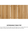 With a middle hidden section that can be easily flipped up to add another 40cm to the table top length, your dining table for 4 easily transforms to a table for 6. A great space-saving feature that adds so much more functionality to the dining table. How good is that! And with its telescopic locking mechanism, the extended section stays safe and secure at all times even with robust use.