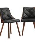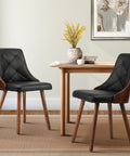 Wooden Dining Chairs Padded Seat x2 Black