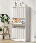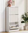 Shoe Rack Storage Cabinet 3 Compartments White