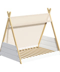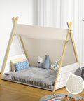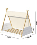 Create a magical and adventurous space in your child's room with this Kids Teepee Tent Bed Frame. It's not just a bed; it's a gateway to a world of imagination and exploration. Make bedtime a joyous experience for your little one, where dreams come to life under the canvas roof of their very own teepee bed. Add it to your child's room and watch as their imagination soars in their personal teepee haven.