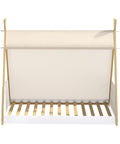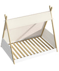 The bed frame's teepee-inspired design adds a touch of enchantment to your child's room. Its playful appearance sparks creativity and encourages imaginative play, making bedtime a delightful adventure. Crafted with safety in mind, this bed frame is built with a sturdy and durable pine wood, ensuring it can withstand the energy of active kids. The wooden frame provides reliable support, and the linen roof is securely attached, guaranteeing a safe sleeping environment.