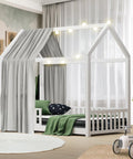 Crafted from solid pine wood frame, the bed frame is sturdy and safe, ensuring long-lasting durability for your child's growing years. Its captivating design sparks the imagination, with the teepee theme where you can hang lighting or other decorations on its frame.