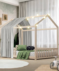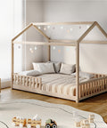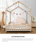Kids Wooden Bed Frame Double Size House Platform Natural
