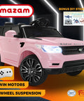 The Mazam Kids Ride On Car 12V in pink offers safe, exciting fun for children aged 3 and up. Inspired by the Range Rover, it features bright LED headlights, a smooth 4-wheel suspension, and slip-resistant tires for better control. Powered by two 25W motors, it reaches speeds of 3 to 8 km/h. Safety is prioritized with a seatbelt, door lock, and a parent-controlled 3-speed remote. The ride includes built-in music, MP3 connectivity, and a horn for entertainment. With up to 2 hours of playtime per charge, this stylish car is a perfect gift that combines fun and peace of mind.