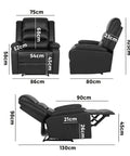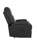 Experience ultimate comfort with this black leather recliner chair. Its plush PU leather upholstery and thick foam padding provide excellent support, while the adjustable backrest and footrest tilt up to 135 degrees let you find your perfect relaxing position. A convenient side pocket keeps your essentials close by, making it ideal for reading, watching movies, or unwinding. Treat yourself to a chair that adapts to your needs and enhances every moment of leisure.
