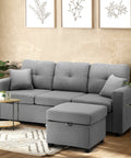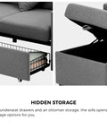 Sofa 3 Seater Chaise Modular Couch Drawers Ottoman Fabric
