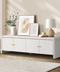 This 160cm TV cabinet features stylish fluted doors and spacious storage with four compartments, perfect for organizing your entertainment essentials. Its sturdy design supports TVs up to 60 inches while offering a sleek, modern look that enhances any living space. With easy-to-use round handles and a fully enclosed back, it keeps your items secure and your room tidy. Elevate your home entertainment setup with this elegant unit that combines practicality and craftsmanship.