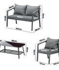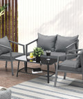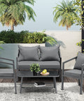 Livsip 4PCS Outdoor Furniture Set Sofa Table Chairs Set Grey
