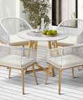 The Livsip 5 Piece Outdoor Dining Set offers a stylish and durable solution for your patio. Featuring a sturdy steel frame and weather-resistant materials, it’s built to last without fading or rusting. The set includes a round table with an easy-to-clean sintered stone top and comfortable chairs with water-resistant cushions for lasting comfort. Perfect for relaxing or entertaining, this set is low-maintenance and designed to enhance your outdoor space effortlessly.