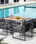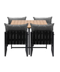 Enjoy outdoor living with the Livsip 5PCS Dining Set. This stylish set includes comfortable, cushioned armchairs with durable PE wicker and a sleek wood-composite table, perfect for relaxing or entertaining. Crafted for all-weather use, it withstands Australia’s climate while adding elegance to your garden or indoor space. Experience comfort and quality with this versatile dining set designed for your lifestyle.