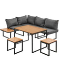 Enjoy outdoor living with the Livsip 6 Seater Outdoor Dining Sofa Set in grey. This versatile set combines comfort and durability with weather-resistant cushions and a sturdy powder-coated steel frame. Featuring a spacious sofa with detachable backrests and a stylish dining table, it’s perfect for relaxing or entertaining on patios, balconies, or even indoors. Its flexible design adapts to any space, making every meal and gathering a stylish, comfortable experience. Durable, practical, and elegant—this set is made to last and impress.
