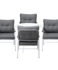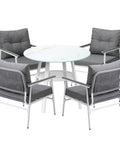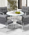 Enjoy alfresco dining with the Livsip Outdoor Dining Set. This stylish 4-seater features a white ceramic tempered glass table with a handy storage shelf and matching chairs designed for comfort and durability. Weather-resistant and built to last, it handles Australian conditions while adding a contemporary touch to any outdoor or indoor space. Perfect for relaxing with family, friends, or on your own, this set invites you to eat, drink, and enjoy every moment in style.
