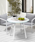 Living life to the fullest. Chilling out under the sun, moon and stars. Alfresco dining with friends, family or just with your precious me-time. Simply pursuing and enjoying life that is meant to be. And the Livsip Outdoor Dining Set is ready to be there at home with you. Stylish. Contemporary. Beautiful. For the dining table, a white ceramic tempered glass top with handy storage shelf beneath. And for the dining chairs, equally attractive pieces that go well with the table. The set has all the attributes of chic outdoor furniture that resonate with your discerning lifestyle. Have your lattes, your favourite brews and savour delectable cuisines and other gastronomical delights. Eat, drink and be merry! But how does the dining set stand up to the harsh and sometimes fickle Australian weather? No worries mate as it is all weather-resistant, chairs and table, with strength and durability for robust use. Not least, this dining setup also looks fabulous with any indoor eclectic styling ideas that you may have. Convinced that this delightful outdoor package is for you? Click on the Buy option and soon you will be feasting to your (and many others too) heart's content at the Livsip Outdoor Dining Set day and night, night and day, in every season.