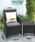 Livsip Outdoor Furniture Patio Chairs Table 3PCS Black