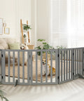 Alopet Wooden Pet Gate Safety Stair Barrier 6-Panel Grey