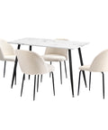 This 120cm rectangle dining table with 4 white Sherpa chairs combines modern style with cozy comfort. The plush Sherpa fabric adds warmth and invites long, relaxed meals, while the sturdy table offers ample space for family dinners or gatherings. Durable and stylish, this set enhances any dining area with a clean, elegant look that lasts.