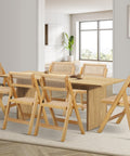 180cm Rectangular Dining Table with 6PCS Dining Chairs Foldable Natural