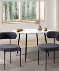With its luxurious Boucle upholstery generously padded with high-density foam for the seat and backrest and, you're sitting on prime comfort. The contoured backrest also provides ample support for you to sit back and enjoy the seat. Soft and satisfying, the feeling is as good as savouring that delicious meal served to you. Aesthetically, the dining chair is simply captivating with its sleek powder-coated metal legs in chic black to accentuate the richness of the seat and curved backrest. A minimalist styling that renders maximum presence.